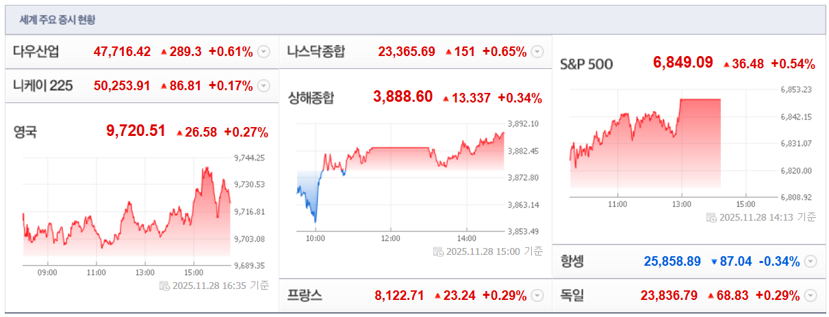 11¿ù ¸¶Áö¸· ÁÖ ÁÖ°£ ±âÁØÀ¸·Î´Â ´Ù¿ì¿Í S&P 500ÀÌ °¢°¢ ¾à 3.2%, 3.7% »ó½ÂÇß°í, ³ª½º´ÚÀº ¾à 4.9% ±ÞµîÇØ ¿ùÃÊ Á¶Á¤ ÀÌÈÄ ´Ü±â ¹Ýµî¼¼°¡ ¶Ñ·ÇÇß´Ù. Áö¼ö ·¹º§ ±âÁØÀ¸·Î ¹Ì±¹ ´ëÇ¥ º¥Ä¡¸¶Å© Áö¼ö(US500)´Â 11¿ù 28ÀÏ ±âÁØ ¾à 6849Æ÷ÀÎÆ®·Î, ÀüÀÏ ´ëºñ 0.5% ¾ÈÆÆ »ó½ÂÇϸ鼭 1³â Àüº¸´Ù ¾à 13% ÀÌ»ó ³ôÀº ¼öÁØÀ» À¯ÁöÇϰí ÀÖ´Ù.​
