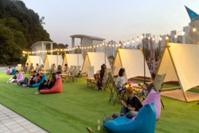 ¡®°¡À»ºû´ë°ø¿ø¡¯Àº ³·°ú ¹ã, ¸ðµÎ ´Ù¸¥ ¸Å·ÂÀ» ¼±»çÇÑ´Ù. ³·¿¡´Â ±×´Ã¸· ÅÙÆ®¿Í ºó¹é ¼îÆÄ, Ä·ÇÎ ÀÇÀÚ, Å×ÀÌºí µîÀÌ ¸¶·ÃµÈ ÈÞ½Ä °ø°£¿¡¼ ´ÜdzÀ» °¨»óÇÏ¸ç ¿©À¯·Î¿î ½Ã°£À» º¸³¾ ¼ö ÀÖ´Ù. °÷°÷¿¡ ¼³Ä¡µÈ Æ÷ÅäÁ¸°ú ¹Ý·Áµ¿¹° »çÁø °ø¸ðÀü ¼ö»óÀÛ Àü½Ãµµ ´«±æÀ» ²ö´Ù.