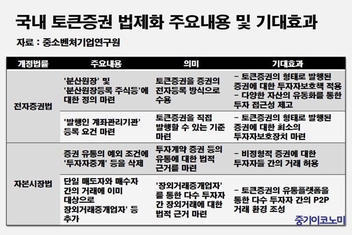 ÅäÅ«Áõ±Ç(Security Token) ¹ýÁ¦È°¡ º»°Ý ÃßÁøµÇ¸ç ºÐ»ê¿øÀå±â¼úÀ» ±â¹ÝÀ¸·Î ÇÑ »õ·Î¿î ÀÚ±ÝÁ¶´Þ ¹æ½ÄÀÌ Áß¼Ò±â¾÷°ú ½ºÅ¸Æ®¾÷ÀÇ ÅõÀÚ Á¢±Ù¼ºÀ» ³ôÀÏ °ÍÀ¸·Î ±â´ëµÇ°í Àִµ¥, À̸¦ Ȱ¿ëÇØ ÀÚ±ÝÁ¶´ÞÀ» ´Ùº¯ÈÇÒ ¼ö Àִ ȯ°æÀ» Á¶¼ºÇϱâ À§ÇÑ Á¤Ã¥Àû Áö¿øÀÌ ÇÊ¿äÇÏ´Ù´Â ÁöÀûÀÌ ³ª¿Ô´Ù.
