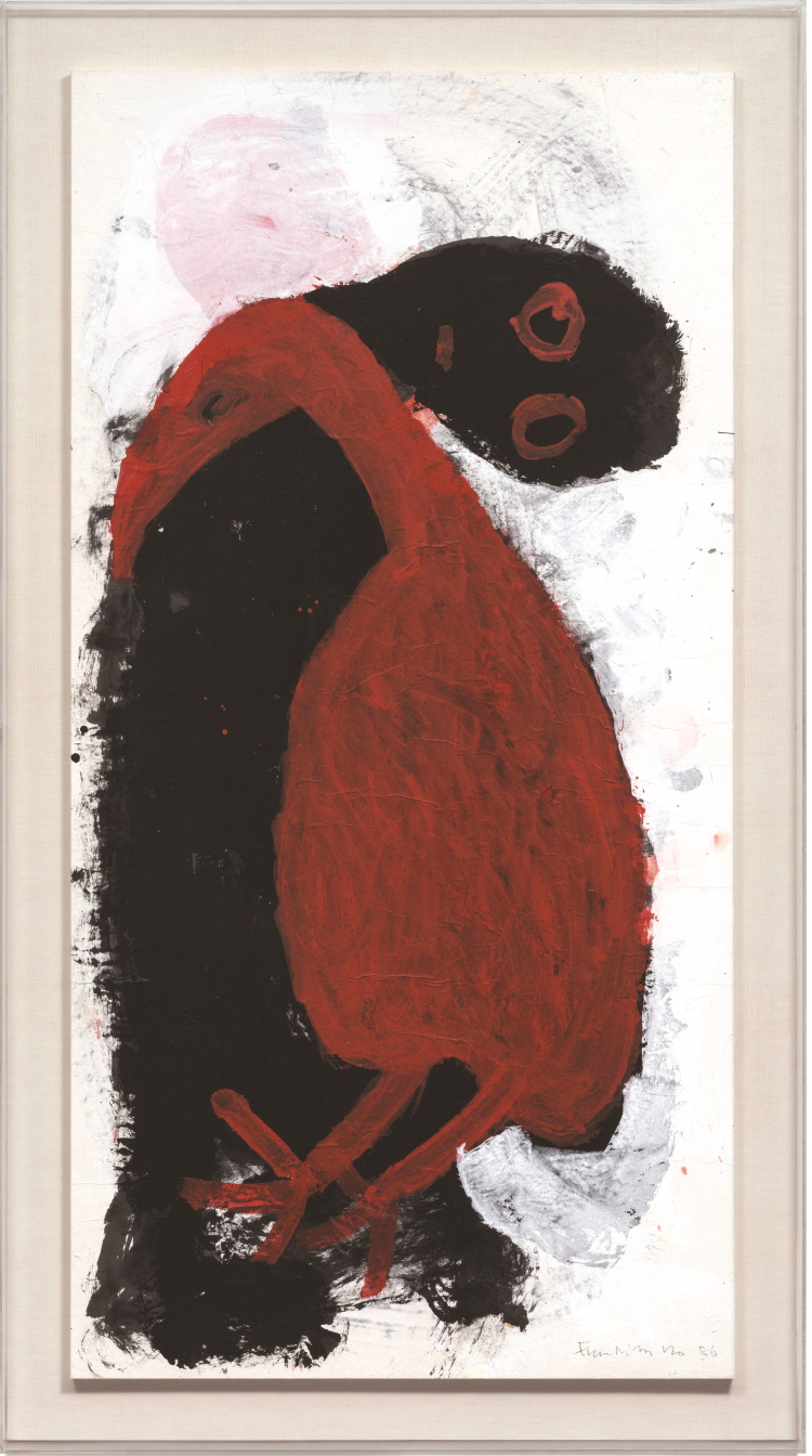 Àü½Ã¿¡ °ø°³µÈ ´ëÇüÀÛµéÀº ÃÖ´ë 3¹ÌÅÍ¿¡ ´ÞÇϴ ȸ鿡 °Ë°í ±½Àº ¼±, °·ÄÇÑ º×Áú, ¼±¸íÇÑ »öÀ» ´ã¾Æ³½´Ù. ±×ÀÇ ¼±Àº ¼¼¼ÓÀÇ Æ²À» ¹þ¾î³ ÀÚÀ¯ÀÇ ÈçÀûÀ̸ç, ȸéÀÇ ¿©¹é°ú ¸¶ÂûÇÏ¸ç »ý¸í·ÂÀ» ¹ßÈÇÑ´Ù. ³°Àº ±Ô¹üÀ» ±ú¶ß¸®°í ¹«ÀǽĿ¡ ´Ù´Ù¸¥ ¼Õ³¡ÀÇ À¯¿¬ÇÑ ¿òÁ÷ÀÓÀº, ±×°¡ ¡°º´»çó·³ ½Î¿ìÁö ¸»°í, Ç®¹ç¿¡¼ ¶Ù³ë´Â ¾î¸°¾ÆÀÌ °°¾Æ¾ß ÇÑ´Ù¡±°í ¾ð±ÞÇÑ Åµµ¸¦ ½Ã°¢ÀûÀ¸·Î ±¸ÇöÇÏ´Â µíÇÏ´Ù.