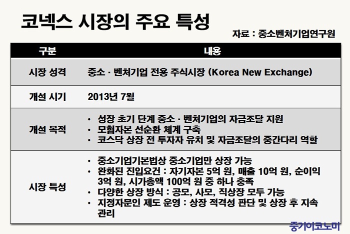 Äڳؽº ½ÃÀåÀº 2013³â Áß¼Ò¡¤º¥Ã³±â¾÷ÀÇ ÀÚº»½ÃÀå ÁøÀÔÀ» ÃËÁøÇϱâ À§ÇØ °³¼³µÆ´Ù. ÄÚ½º´Ú ÁøÀÔ Àü ´Ü°è¿¡¼ ±â¾÷ÀÌ ÀÏÁ¤ ±Ô¸ðÀÇ ½ÃÀå Æò°¡¿Í ÅõÀÚÀÚ ³×Æ®¿öÅ©¸¦ È®º¸ÇÒ ¼ö ÀÖµµ·Ï ¼³°èµÈ ½ÃÀåÀ¸·Î, °³¼³ Ãʱ⿡´Â ±â¼ú·Â Áß½ÉÀÇ Áß¼Ò±â¾÷ÀÌ ÄÚ½º´Ú ÀÌÀü »óÀåÀ» ÁغñÇÏ´Â ¡®¼ºÀå »ç´Ù¸®¡¯·Î ±â´ÉÇß´Ù.