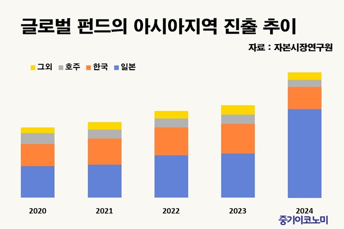 ÀÌ·¯ÇÑ º¯È¿¡ ÈûÀÔ¾î ÀϺ» ³» ±â¾÷°ú ÅõÀÚÀÚ °£ÀÇ ´ëÈ °Ç¼ö´Â 2017³â 3128°Ç¿¡¼ 2022³â 6096°ÇÀ¸·Î 2¹è °¡±îÀÌ ±ÞÁõÇß´Ù. ±Û·Î¹ú ÆÝµåÀÇ ¾Æ½Ã¾Æ Áö¿ª ÁøÃâ Áß ÀϺ»ÀÌ Â÷ÁöÇÏ´Â ºñÁßÀÌ 2024³â ±âÁØ Àý¹ÝÀ» ³Ñ¾î¼³ Á¤µµ·Î ÀϺ» ½ÃÀåÀº Ȱ±â¸¦ ¶ì°í ÀÖ´Ù.