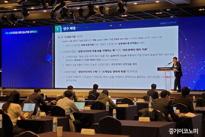 ¶ÇÇÑ °í¼ºÀå ±â¾÷Àº ÀÏ¹Ý ±â¾÷º¸´Ù Áß¼Ò±â¾÷ Áö¿ø»ç¾÷ÀÇ ¼öÇý °Ç¼ö¿Í ±Ý¾×ÀÌ ¸ðµÎ ³ô¾Ò´Ù. 2023³â ±âÁØ Àüü Áß¼Ò±â¾÷ °¡¿îµ¥ °í¼ºÀå ±â¾÷Àº 2¸¸591°³À̸ç, ÀÌ °¡¿îµ¥ 22.5%°¡ Áß±âÁö¿ø»ç¾÷ ¼öÇý ±â¾÷À̾ú´Ù. ¸ÅÃâ °í¼ºÀå ±â¾÷ÀÌ °¡Àå ¸¹°í, ¸ÅÃâ°ú °í¿ëÀÌ µ¿½Ã¿¡ °í¼ºÀåÀÎ ±â¾÷Àº 1.7%·Î »ó´ëÀûÀ¸·Î Àû¾ú´Ù. ºñ¼öÇý ±â¾÷¿¡¼µµ °í¼ºÀå »ç·Ê°¡ ³ªÅ¸³µÁö¸¸, ±è ºÎ¿¬±¸À§¿øÀº ¡°ÀÌ´Â ÀϺΠ±â¾÷ÀÌ ÀÚ»ýÀûÀ¸·Î ¼ºÀåÇÏ´Â ¿ª·®À» º¸À¯Ç߱⠶§¹®¡±À̶ó°í Áø´ÜÇß´Ù.