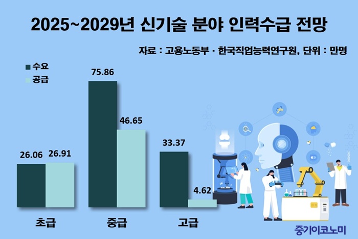 º¸°í¼¿¡ µû¸£¸é, 2029³â±îÁö ½Å±â¼ú ºÐ¾ß¿¡¼ Áß±Þ ÀÎÀç´Â ¾à 29¸¸2000¸íÀÌ ºÎÁ·Çϰí, °í±Þ ÀÎÀç´Â ¾à 28¸¸7000¸í °¡·®ÀÌ ºÎÁ·ÇÒ °ÍÀ¸·Î º¸ÀδÙ. ÀÌ´Â AI ±â¹Ý ±â¾÷ÀÇ ¼ºÀ嵿·ÂÀ» ¾àȽÃų ¼ö¹Û¿¡ ¾ø´Ù´Â ÁöÀûÀÌ´Ù. ¿©±â¿¡ AI »ê¾÷ºÐ¾ß ÅõÀÚ°¡ ±âÇϱ޼öÀûÀ¸·Î ´Ã°í ÀÖ´Â Çö½ÇÀ» °¨¾ÈÇϸé, 58¸¸¿©¸íÀÇ ºÎÁ· ÀοøÀº ÃÖ¼ÒÄ¡¶ó´Â °ÍÀÌ´Ù.