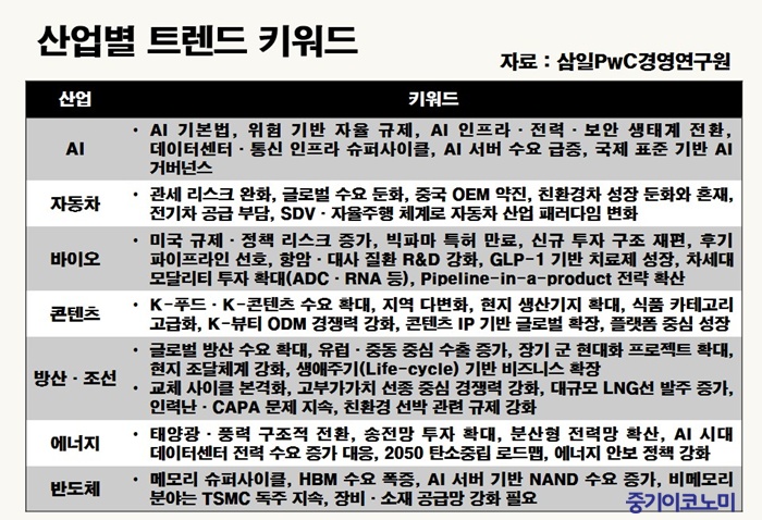 »ïÀÏPwC°æ¿µ¿¬±¸¿øÀº ¡°2026³â ±â¾÷ °æ¿µÀº ±â¼ú¸¸À¸·Î ½ÂºÎÇÒ ¼ö ¾ø´Ù¡±¸ç ¡°Á¤Ã¥ÀÇ ¹æÇâ°ú »ê¾÷ÀÇ ±¸Á¶Àû º¯È¸¦ Á¤È®È÷ Àаí, ÀÌ¿¡ ¸ÂÃá Àü·«Àû ¹Îø¼ºÀÌ ±â¾÷ »ýÁ¸ÀÇ °áÁ¤Àû ¿äÀÎÀÌ µÉ °Í¡±À̶ó°í Çß´Ù. Áß±âÀÌÄÚ³ë¹Ì ä¹Î¼± ±âÀÚ