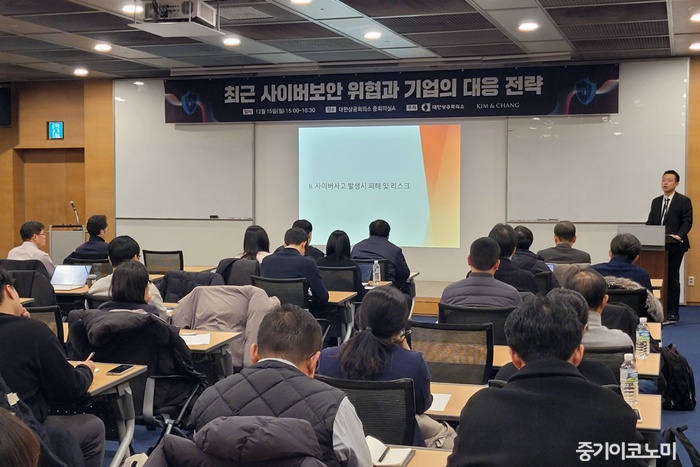 ÀÌÀÎȯ ±è¡¤Àå¹ý·ü»ç¹«¼Ò º¯È£»ç´Â 15ÀÏ ´ëÇÑ»ó°øÈ¸ÀǼҰ¡ °³ÃÖÇÑ ¡®ÃÖ±Ù »çÀ̹öº¸¾È À§Çù°ú ±â¾÷ÀÇ ´ëÀÀ Àü·«¡¯ ¼¼¹Ì³ª¿¡¼ ¡®»çÀ̹öº¸¾È »ç°í ÇöȲ ¹× ¹ý·ü ´ëÀÀ ¹æ¹ý·Ð¡¯À» ÁÖÁ¦·Î ¹ßÇ¥ÇÏ¸ç ¡°»çÀ̹öº¸¾È »ç°í´Â IT ºÎ¼¸¸ÀÇ ¹®Á¦°¡ ¾Æ´Ï¶ó ¹ý·ü, ±ÔÁ¦, °æ¿µ ÆÇ´ÜÀÌ µ¿½Ã¿¡ ÀÛµ¿ÇÏ´Â º¹ÇÕ À§±â¡±¶ó°í °Á¶Çß´Ù. ±×·¯¸é¼ »ç°í ¹ß»ý ÀÌÈÄÀÇ ´ëÀÀ Àü·«ÀÌ ±â¾÷ÀÇ ÇÇÇØ ±Ô¸ð¿Í Á¸¼Ó ¿©ºÎ¸¦ Á¿ìÇÑ´Ù°í Çß´Ù.