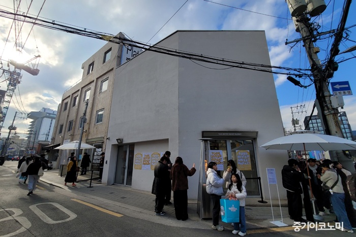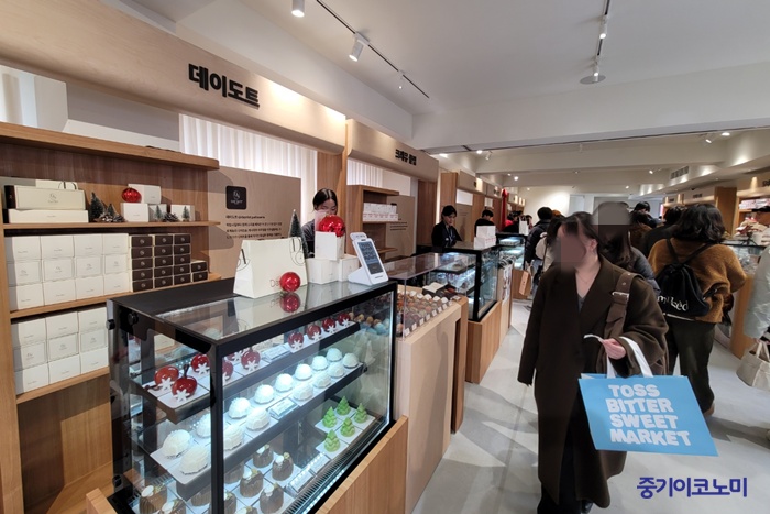 19ÀÏ ¼¿ï ¼º¼öµ¿ ÇöóÃ÷2. °« ±¸¿î »§ ³¿»õ¿Í ÃÊÄݸ´ ÇâÀÌ °ø°£À» ä¿î °¡¿îµ¥, ÀÛÀº ºÎ½º¸¶´Ù Àú¸¶´ÙÀÇ À̾߱⸦ °¡Áø µðÀúÆ®µéÀÌ Áø¿µÆ´Ù. Å佺°¡ ¼Ò»ó°øÀÎÀÇ µµÀü°ú ¼ºÀåÀ» Á¶¸íÇϱâ À§ÇØ ¸¶·ÃÇÑ ¿ÀÇÁ¶óÀÎ µðÀúÆ® ¸¶ÄÏ ¡®Å佺 ºñÅͽºÀ ¸¶ÄÏ(Toss Bitter Sweet Market)¡¯ÀÇ ÇöÀåÀÌ´Ù.