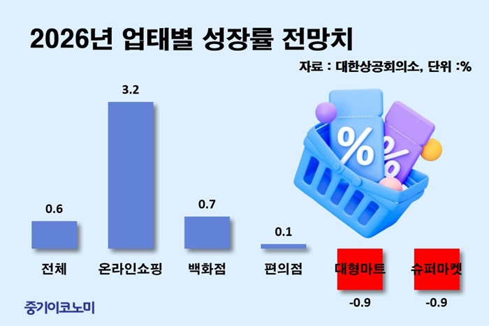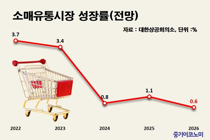 °í¹°°¡¿¡ ¼Òºñ½É¸® À§ÃàÀÌ °ãÄ¡¸ç 2026³â ±¹³» ¼Ò¸ÅÀ¯Åë½ÃÀåÀÌ ÃÖ±Ù 5³â Áß °¡Àå ³·Àº ¼ºÀå·üÀ» ±â·ÏÇÒ °ÍÀ̶ó´Â Á¶»ç°¡ ³ª¿Ô´Ù. ¿Â¶óÀÎ Áß½ÉÀÇ ±¸Á¶Àû ÀçÆíÀÌ À̾îÁö´Â °¡¿îµ¥ ´ëÇü¸¶Æ®¿Í ½´ÆÛ¸¶ÄÏ µî ÀüÅë ¿ÀÇÁ¶óÀΠä³ÎÀÇ ºÎÁøÀº ´õ ½ÉÇÒ °ÍÀ¸·Î º¸ÀδÙ.