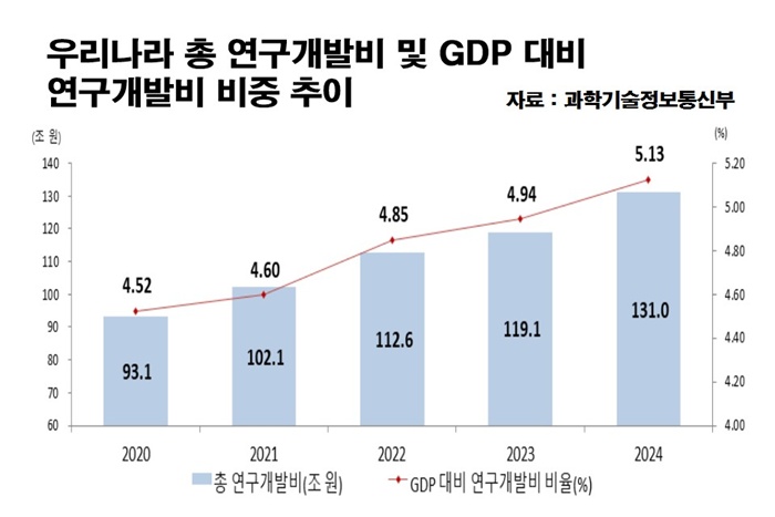 ¿ì¸®³ª¶ó ¿¬±¸°³¹ß(R&D) ÅõÀÚ°¡ 2024³â »ç»ó ÃÖ´ë ±Ô¸ð¸¦ ±â·ÏÇÏ¸ç ±Û·Î¹ú ÃÖ»óÀ§±ÇÀ» À¯ÁöÇß´Ù. °úÇбâ¼úÁ¤º¸Åë½ÅºÎ´Â °ø°ø¡¤¹Î°£ ºÎ¹®À» ´ë»óÀ¸·Î ½Ç½ÃÇÑ ¡®2024³âµµ ¿¬±¸°³¹ßȰµ¿Á¶»ç °á°ú¡¯¸¦ ÅëÇØ Áö³ÇØ ±¹³» ÃÑ ¿¬±¸°³¹ßºñ°¡ 131Á¶462¾ï¿øÀ¸·Î Àü³â ´ëºñ 10.1% Áõ°¡Çß´Ù°í ¹àÇû´Ù.