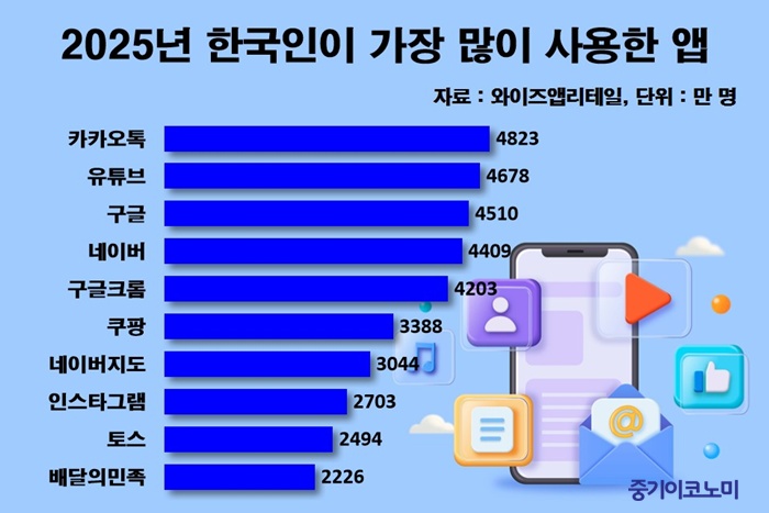 2025³â ÇÑ ÇØ µ¿¾È Çѱ¹ÀÎÀÌ °¡Àå ¸¹ÀÌ, ¿À·¡, ÀÚÁÖ »ç¿ëÇÑ ¾ÛÀº ¹«¾ùÀϱî. 31ÀÏ ¿ÍÀÌÁî¾Û¡¤¸®Å×ÀÏÀÌ ¹ßÇ¥ÇÑ ¡®2025³â ¾Û ¼øÀ§ ÃÑÁ¤¸®¡¯¿¡ µû¸£¸é īī¿ÀÅå°ú À¯Æ©ºêÀÇ ¾ç° üÁ¦°¡ ´õ¿í °ø°íÇØÁø °ÍÀ¸·Î ³ªÅ¸³µ´Ù.