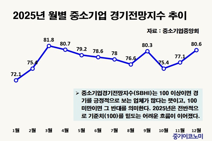°æÁ¦ÁöÇ¥´Â ³ª»ÚÁö ¾Ê¾Ò´Ù. ¹ÝµµÃ¼ ¼öÃâÀº ¿¬ÀÏ ½Å±â·ÏÀ» °¥¾ÆÄ¡¿ü°í, Á¤ºÎ´Â ¡®¼öÃâ 7000¾ïºÒ ½Ã´ë¡¯¸¦ ¿¾ú´Ù¸ç ȸº¹ÀÇ ½ÅÈ£¸¦ °Á¶Çß´Ù. °Å½Ã°æÁ¦ ÁöÇ¥¸¸ ³õ°í º¸¸é ºÐ¸í ¹ÝµîÀÇ ±¹¸éÀ̾ú´Ù. ¼ºÀå·ü, ¼öÃâ, ±â¾÷ ½ÇÀû±îÁö ¼öÄ¡´Â ÀÏÁ¦È÷ »ó½ÂÇß´Ù.±×·¯³ª ±âÀÚ°¡ ÇÑ ÇØ µ¿¾È ¸¸³ Áß¼Ò±â¾÷Àΰú ¼Ò»ó°øÀεéÀÇ Ç¥Á¤¿¡¼ ÀÌ·¯ÇÑ ¿Â±â¸¦ ü°¨Çϱâ´Â ¾î·Á¿ü´Ù. ´ë±â¾÷ÀÇ ¿µ¾÷ÀÌÀÍÀÌ ¼öÁ¶ ¿ø´ë¿¡ À̸£·¶´Ù´Â ¼Ò½ÄÀÌ ÀüÇØÁú¼ö·Ï, ÇöÀåÀÇ ¹ÚÅ»°¨Àº ¿ÀÈ÷·Á ±í¾îÁ³´Ù. ¼öÃâ È£Á¶ÀÇ ³«¼öÈ¿°ú´Â ÀÌ¹Ì ¿À·¡Àü¿¡ ¸ØÃè´Ù´Â ÀÚÁ¶ ¼¯ÀÎ ¸»ÀÌ ÇöÀå¿¡¼´Â ÀÏ»óÀÌ µÆ´Ù.Áß¼Ò Á¦Á¶¾÷ ÇöÀåÀº ¿ÃÇØ ±×¾ß¸»·Î »ýÁ¸À» °Ç »çÅõÀÇ ¿¬¼ÓÀ̾ú´Ù. ¿øÀÚÀç °¡°ÝÀº ¿©ÀüÈ÷ ºÒ¾ÈÁ¤Çß°í, °íÁúÀûÀÎ Àη³Àº ¿Ü±¹ÀÎ Àη Ȯº¸Á¶Â÷ ½±Áö ¾ÊÀº »óȲÀ¸·Î ¾ÇȵƴÙ. ¿©±â¿¡ ±Û·Î¹ú °ø±Þ¸Á ÀçÆí°ú ź¼ÒÁ߸³À̶ó´Â ½Ã·ùÀÇ º¯È´Â Àڱݷ°ú Á¤º¸·ÂÀÌ ºÎÁ·ÇÑ Áß¼Ò±â¾÷¿¡ °¡È¤ÇÑ ºÎ´ãÀ¸·Î ÀÛ¿ëÇß´Ù. Á¤ºÎ°¡ ´Ù¾çÇÑ Áö¿øÃ¥À» ³»³ùÁö¸¸, µðÁöÅÐ ÀüȯÀ̳ª ESG °æ¿µ ´ëÀÀ¿¡ ÇÊ¿äÇÑ ºñ¿ëÀ» °¨´çÇϱ⿡´Â ¿ªºÎÁ·À̾ú´Ù. °á±¹ Çõ½ÅÀÇ ¹®ÅÎÀ» ³ÑÁö ¸øÇÑ ±â¾÷µéÀº °æÀï·Â ¾àÈ¿Í µµÅÂÀÇ ±â·Î¿¡ ¼°Ô µÆ´Ù.°ñ¸ñ»ó±Ç »çÁ¤Àº ´õ¿í Âü´ãÇß´Ù. °í±Ý¸®¿Í °í¹°°¡ÀÇ ±ä ÅͳÎÀ» Áö³ª¿Â ¼Ò»ó°øÀε鿡°Ô ³²Àº °ÍÀº ´«µ¢ÀÌó·³ ºÒ¾î³ ºÎä¿´´Ù. Äڷγª19 ½Ã±âºÎÅÍ À̾îÁ® ¿Â ´ëÃâ ¸¸±â¿¬Àå°ú »óȯÀ¯¿¹´Â ¿ÃÇØ ¸¸±â µµ·¡¿Í ÇÔ²² ¡®ÆøÅº µ¹¸®±â¡¯¿¡ ºÒ°úÇßÀ½ÀÌ µå·¯³µ´Ù. Æó¾÷ÇÏ°í ½Í¾îµµ Æó¾÷ ºñ¿ëÁ¶Â÷ ¾ø¾î ¿µ¾÷À» À̾´Ù´Â Çϼҿ¬Àº, ÁöÇ¥ Áß½ÉÀÇ °æÁ¦Á¤Ã¥ÀÌ ¾ó¸¶³ª ÇöÀå°ú ±«¸®µÅ ÀÖ´ÂÁö¸¦ º¸¿©ÁØ´Ù. ¡®¼Ò»ó°øÀÎ 100¸¸ ¸í Æó¾÷ ½Ã´ë¡¯¶ó´Â Åë°è´Â ´©±º°¡ÀÇ »îÀÇ ÅÍÀüÀÌ ¹«³ÊÁø ºñ±ØÀÇ ±â·ÏÀÌ´Ù.ÀÌÁ¦ 2026³â »õÇØ¸¦ ¸Â´Â´Ù. Á¤ºÎ´Â ¿©ÀüÈ÷ ¼ºÀåÀÇ Áö¼Ó¼ºÀ» °Á¶Çϰí ÀÖÁö¸¸, ÀÌÁ¦´Â ¼ºÀåÀÇ ¡®¼Óµµ¡¯º¸´Ù ¡®Áú¡¯À» Á¡°ËÇØ¾ß ÇÒ ½ÃÁ¡ÀÌ´Ù. ´ë±â¾÷ Áß½ÉÀÇ ¼öÃâ ¼º°ú°¡ Áß¼Ò Çù·Â»çÀÇ ¼öÀͼº °³¼±À¸·Î À̾îÁú ¼ö ÀÖµµ·Ï °øÁ¤ÇÑ °Å·¡ ±¸Á¶¸¦ È®¸³ÇÏ´Â °ÍÀÌ ¹«¾ùº¸´Ù ½Ã±ÞÇÏ´Ù. º¶û ³¡¿¡ ¸ô¸° ¼Ò»ó°øÀε鿡°Ôµµ ÀÏȸ¼º Çö±Ý Áö¿øÀÌ ¾Æ´Ñ, 乫 ±¸Á¶Á¶Á¤°ú Àç±â Áö¿øÀ» Æ÷ÇÔÇÑ ½ÇÁúÀûÀÎ ¾ÈÀü¸ÁÀÌ ÇÊ¿äÇÏ´Ù.°æÁ¦´Â ¼ýÀÚ·Î ¿Ï¼ºµÇÁö ¾Ê´Â´Ù. ÁöÇ¥´Â °á°úÀÏ »ÓÀ̸ç, ±× ÁöÇ¥¸¦ ¶°¹ÞÄ¡´Â °ÍÀº °á±¹ ÇöÀå¿¡¼ ÀÏÇÏ´Â »ç¶÷µéÀÇ »îÀÌ´Ù. ¼öÃâ ±â·ÏÀÌ ¾Æ¹«¸® È·ÁÇØµµ Áß¼Ò±â¾÷ÀÌ ¹öƼÁö ¸øÇϰí, °ñ¸ñ»ó±ÇÀÌ ¹«³ÊÁø´Ù¸é ±× ¼ºÀåÀº Áö¼ÓµÉ ¼ö ¾ø´Ù. ÁöÇ¥ÀÇ Ç³¿ä°¡ ÇöÀåÀÇ ¿Â±â·Î À̾îÁú ¶§ ºñ·Î¼Ò °æÁ¦È¸º¹Àº Çö½ÇÀÌ µÈ´Ù. ±×·¸Áö ¾Ê´Ù¸é °æÁ¦ °±¹ÀÇ ±¸È£´Â ¶Ç ÇϳªÀÇ °øÇãÇÑ ¸Þ¾Æ¸®·Î ³²À» »ÓÀÌ´Ù. Áß±âÀÌÄÚ³ë¹Ì ä¹Î¼± ±âÀÚ
