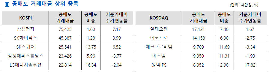 ÄÚ½ºÇÇ¡¤ÄÚ½º´Ú ÇÕ»ê °ø¸Åµµ °Å·¡´ë±ÝÀÌ 2026³â ù °Å·¡ÀÏÀÎ 1¿ù 2ÀÏ 9259¾ï¿øÀ» ±â·ÏÇϸç Àü °Å·¡ÀÏ ´ëºñ 595¾ï¿ø °¨¼ÒÇß´Ù. ÄÚ½ºÇÇ¿Í ÄÚ½º´Ú ¸ðµÎ °ø¸Åµµ ºñÁßÀº 2025³â 12¿ù Æò±Õ ¼öÁغ¸´Ù ³·¾ÆÁö¸ç ¿¬ÃÊ ¼ö±Þ ºÎ´ãÀº ´Ù¼Ò ¿ÏÈµÈ ¸ð½ÀÀÌ´Ù.ÄÚ½ºÇÇ °ø¸Åµµ °Å·¡´ë±ÝÀº 6584¾ï¿ø, ÄÚ½º´ÚÀº 2675¾ï¿øÀ¸·Î ³ªÅ¸³µ´Ù.°ø¸Åµµ °Å·¡´ë±ÝÀÌ Àüü °Å·¡´ë±Ý¿¡¼ Â÷ÁöÇÏ´Â ºñÁßÀº ÄÚ½ºÇÇ 3.01%, ÄÚ½º´Ú 1.96%·Î, 2025³â 12¿ù ÀÏÆò±Õ °ø¸Åµµ ºñÁß(ÄÚ½ºÇÇ 3.68%, ÄÚ½º´Ú 1.88%)°ú ºñ±³ÇØ ÄÚ½ºÇÇ´Â ³·¾ÆÁö°í ÄÚ½º´ÚÀº ¼ÒÆø ³ô¾ÆÁ³´Ù.ÅõÀÚÁÖüº° °ø¸Åµµ ºñÁß(°Å·¡´ë±Ý ±âÁØ)Àº ÄÚ½ºÇÇ¿¡¼ ¿Ü±¹ÀÎ 68.60%, ±â°ü 30.29%, °³ÀÎ 1.11%¿´´Ù. ÄÚ½º´Ú ¿ª½Ã ¿Ü±¹ÀÎ ºñÁßÀÌ 76.00%·Î ³ô¾Ò°í, ±â°ü 22.22%, °³ÀÎ 1.78% ¼øÀ¸·Î Áý°èµÆ´Ù.¿¬¸»°ú ºñ±³Çϸé ÄÚ½ºÇÇ¿¡¼ ¿Ü±¹ÀÎ ºñÁßÀº 65.66%(12¿ù 30ÀÏ)¿¡¼ 68.60%·Î »ó½ÂÇß°í, ±â°ü ºñÁßÀº 33.28%¿¡¼ 30.29%·Î Ç϶ôÇß´Ù. ÄÚ½º´Ú¿¡¼µµ ¿Ü±¹ÀÎ ºñÁßÀº 69.28%¿¡¼ 76.00%·Î »ó½ÂÇØ ¾ç ½ÃÀå ¸ðµÎ °ø¸Åµµ °Å·¡¿¡¼ ¿Ü±¹ÀÎ ¿ìÀ§ ±¸Á¶°¡ °ÈµÆ´Ù.ÄÚ½ºÇÇ¿¡¼ °ø¸Åµµ °Å·¡´ë±Ý »óÀ§ Á¾¸ñÀº »ï¼ºÀüÀÚ, SKÇÏÀ̴нº, SK½ºÄù¾î, »ï¼º¿¡ÇǽºÈ¦µù½º, LG¿¡³ÊÁö¼Ö·ç¼Ç ¼øÀ¸·Î ³ªÅ¸³µ´Ù.ÄÚ½º´Ú¿¡¼´Â ¾ËÅ׿ÀÁ¨, ¿¡ÄÚÇÁ·Î, ¿¡ÄÚÇÁ·Îºñ¿¥, ¿¡½º¿¥, ¿øÀÍIPS°¡ °ø¸Åµµ °Å·¡´ë±Ý »óÀ§¸¦ ±â·ÏÇß´Ù. Áß±âÀÌÄÚ³ë¹Ì ±èÇö¼º ±âÀÚ