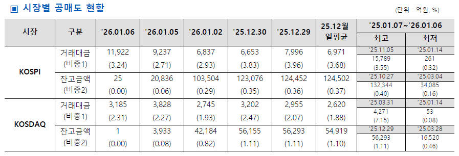 Çѱ¹°Å·¡¼Ò ½ÃÀå°¨½ÃÀ§¿øÈ¸(KRX)ÀÇ ºê¸®ÇÎ ÀÚ·á¿¡ µû¸£¸é 6ÀÏ Á¤±ÔÀå ±âÁØ °ø¸Åµµ °Å·¡´ë±ÝÀº ÃÑ 1Á¶5108¾ï¿øÀ¸·Î Áý°èµÆ´Ù. ÀÌ´Â Àüü °Å·¡´ë±ÝÀÇ ¾à 2.99%¿¡ ÇØ´çÇÏ´Â ±Ô¸ð·Î, Á÷Àü °Å·¡ÀÏ ´ëºñ ¾à 2041¾ï¿ø Áõ°¡ÇÑ ¼öÄ¡´Ù.¿Ü±¹ÀÎ ÅõÀÚÀÚ, ¾ç´ë ½ÃÀå¼ °ø¸Åµµ ÁÖµµ½ÃÀ庰 °ø¸Åµµ ÇöȲÀ» »ìÆìº¸¸é À¯°¡Áõ±Ç½ÃÀå(KOSPI)ÀÇ °ø¸Åµµ °Å·¡´ë±ÝÀº 1Á¶1922¾ï¿ø(°Å·¡ºñÁß 3.24%)À» ±â·ÏÇßÀ¸¸ç, ÄÚ½º´Ú½ÃÀåÀº 3185¾ï¿ø(°Å·¡ºñÁß 2.31%)À¸·Î ³ªÅ¸³µ´Ù.ÅõÀÚ ÁÖüº°·Î´Â ¿Ü±¹ÀÎ ÅõÀÚÀÚÀÇ ºñÁßÀÌ ¾ÐµµÀûÀ¸·Î ³ô¾Ò´Ù. ÄÚ½ºÇÇ ½ÃÀåÀÇ ¿Ü±¹ÀÎ °ø¸Åµµ ºñÁßÀº 82.53%¿´À¸¸ç, ±â°ü°ú °³ÀÎÀº °¢°¢ 16.30%, 1.17%¿¡ ±×ÃÆ´Ù. ÄÚ½º´Ú ½ÃÀå ¿ª½Ã ¿Ü±¹ÀÎ ºñÁßÀÌ 82.81%¿¡ ´ÞÇØ, ±â°ü(16.40%)°ú °³ÀÎ(0.79%)À» Å©°Ô ¾Õ¼¹´Ù.»ï¼ºÀüÀÚ¡¤°í·Á¾Æ¿¬ µî ½ÃÃÑ »óÀ§ÁÖ °Å·¡ ¸ô·ÁÁ¾¸ñº°·Î´Â ÄÚ½ºÇÇ¿¡¼ »ï¼ºÀüÀÚÀÇ °ø¸Åµµ °Å·¡´ë±ÝÀÌ 1874¾ï2800¸¸¿øÀ¸·Î °¡Àå ¸¹¾ÒÀ¸¸ç, °í·Á¾Æ¿¬(532¾ï600¸¸¿ø), Çö´ëÂ÷(509¾ï7300¸¸¿ø)°¡ ±× µÚ¸¦ À̾ú´Ù. ƯÈ÷ °í·Á¾Æ¿¬Àº °ø¸Åµµ ºñÁßÀÌ 30.00%¿¡ ´ÞÇßÀ¸¸ç, ÁÖ°¡´Â ±âÁذ¡ ´ëºñ 8.80% Ç϶ôÇß´Ù. ÄÚ½º´Ú ½ÃÀå¿¡¼´Â ¿¡ÄÚÇÁ·Î(177¾ï500¸¸¿ø), ¿¡À̺ñ¿¤¹ÙÀÌ¿À(171¾ï2100¸¸¿ø) ¼øÀ¸·Î °Å·¡´ë±ÝÀÌ ¸¹¾Ò´Ù.À̳¯ °ø¸Åµµ ½ÃÀåÀº ¿Ü±¹ÀÎ ÅõÀÚÀÚÀÇ °Å·¡ ºñÁßÀÌ 80%¸¦ ³Ñ¾î¼¸ç ¿©ÀüÈ÷ ¿Ü±¹ÀÎ ÁÖµµ Àå¼¼°¡ ¶Ñ·ÇÇÔÀ» º¸¿©ÁÖ¾ú´Ù. ƯÈ÷ °í·Á¾Æ¿¬°ú °°Àº ƯÁ¤ Á¾¸ñ¿¡ °ø¸Åµµ°¡ ÁýÁߵǸç ÁÖ°¡ º¯µ¿¼ºÀÌ È®´ëµÇ´Â ¸ð½ÀÀº ÅõÀÚÀÚµéÀÇ °¢º°ÇÑ ÁÖÀǰ¡ ¿ä±¸µÇ´Â ´ë¸ñÀÌ´Ù. Áß±âÀÌÄÚ³ë¹Ì ±èÇö¼º ±âÀÚ